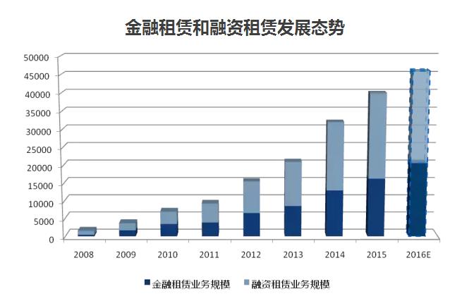 在實體經濟發展和行業政策推動的雙重驅動下,金融租賃經歷了一波黃金發展期。2001年后中國經濟進入一輪長增長周期,國民經濟總體呈現增長較快、結構優化、物價穩定的發展態勢,2010年國內生產總值達到40.89萬億元,超過日本成為僅次于美國的世界第二大經濟體,2015年國內生產總值已達到67.67萬億元。金融租賃的近一輪肇興則起于2007年,銀監會修訂《金融租賃公司管理辦法》,允許合格金融機構參股或設立金融租賃公司,國內主要商業銀行先后設立或參股金融租賃公司。與此同時,金融租賃發展所需的法律、監管、會計、稅收等支柱政策體系也逐漸完善。