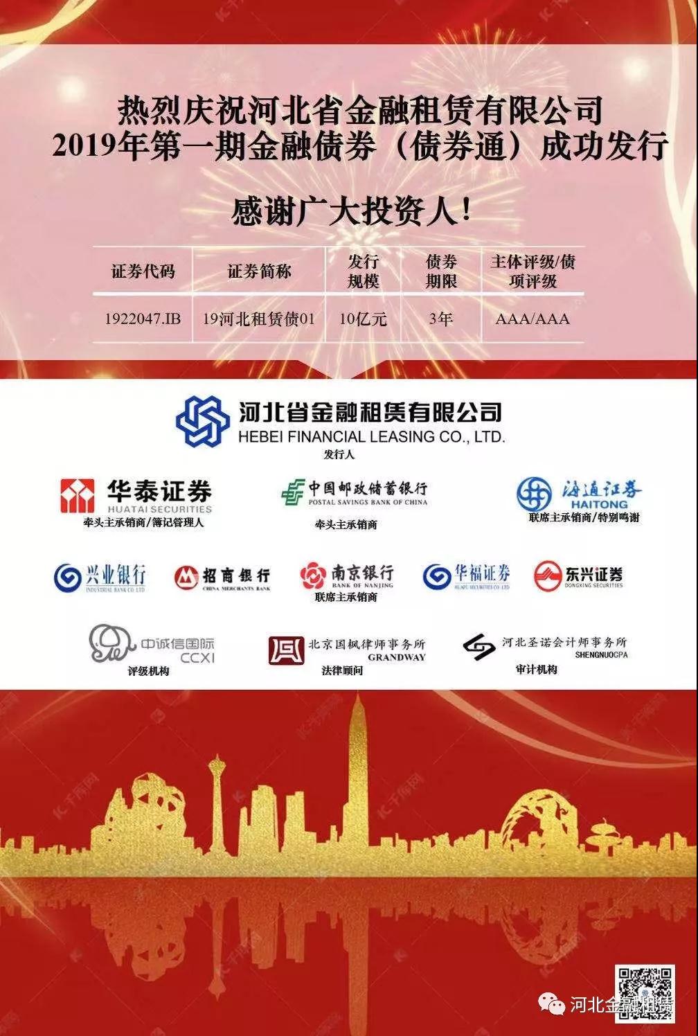 近年來,河北金租積極推動融資租賃主業發展,加強產融結合,不斷提高業務專業能力,在清潔能源、節能環保、醫療健康、汽車金融等業務領域逐漸積累競爭優勢。同時,積極開拓各類創新融資方式,經連續四年發行金融債,并在綠色金融債、資產證券化等融資創新方面享有良好口碑,經中誠信國際信用評級有限責任公司評定,公司主體信用評級已連續兩年保持AAA。