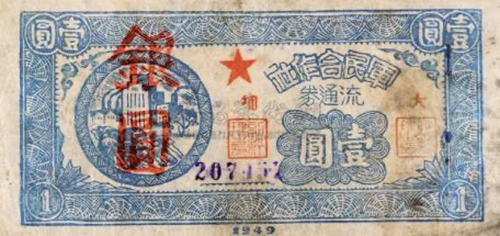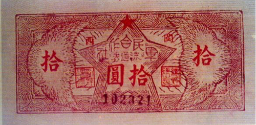 在抗戰(zhàn)勝利結(jié)束時,山東解放區(qū)已有極大發(fā)展,有12.5萬平方公里的面積,占山東總面積的92%,擁有2400萬人口,占山東總?cè)丝诘?0%。1948年10月,山東的北海銀行幣與華北的冀南銀行幣、晉察冀邊區(qū)幣固定比價互相流通,1948年11月16日起,北海銀行幣與華中銀行幣等價流通。這一時期的北海銀行幣均不加蓋地名,便于山東以外的地區(qū)流通。1948年12月1日,華北銀行、北海銀行、西北農(nóng)民銀行合并,在石家莊成立中國人民銀行,但因工作的需要,北海銀行繼續(xù)營業(yè),1949年1月底開始回收北海銀行幣,同年11月1日改稱中國人民銀行山東分行,至此,北海銀行完成了它的歷史使命宣告結(jié)束。