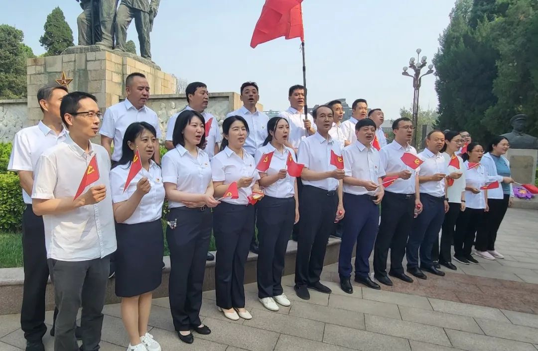 微信圖片_20220618222333.jpg最后,大家來到烈士紀念館廣場上,排列整齊的隊伍,揮動黨旗,昂首挺胸,高唱“沒有共產黨就沒有新中國”,在黨的生日到來之際,抒發對黨熱愛之情,嘹亮的歌聲在廣場上空回蕩。