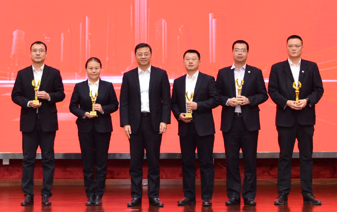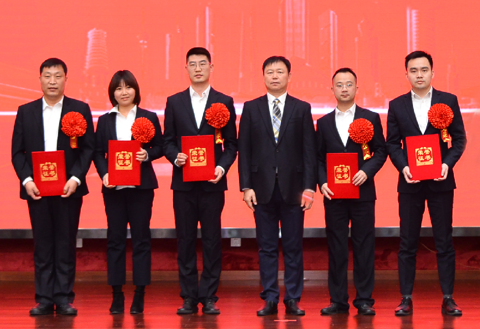 ▲總裁楊應(yīng)群(右三)為21位先進(jìn)個人頒獎